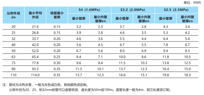 以下為聯(lián)塑PP-R塑鋁穩(wěn)態(tài)復(fù)合管的產(chǎn)品規(guī)格: