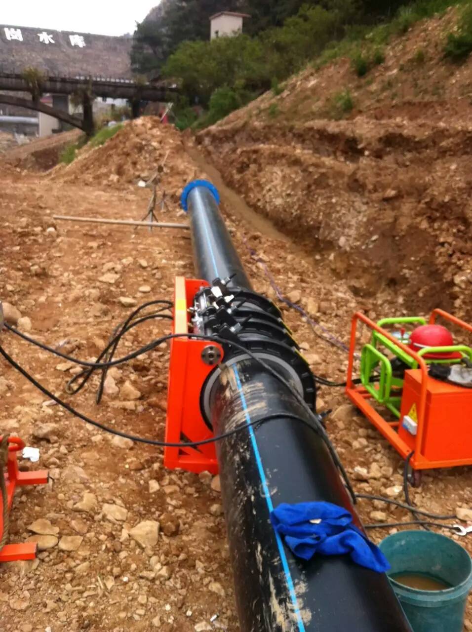 下管。將管材沿溝槽排好,管材下槽前作最后的檢查,如有破損或裂紋的則剔除。直徑在200毫米以下的管材的移動(dòng)與下槽,一般不用機(jī)械。大直徑的管道用輪胎式起重機(jī) 或者三腳架和葫蘆吊放。排管常常從閘閥或者配件處開(kāi)始。管子逐根下槽,并順序做好接口。