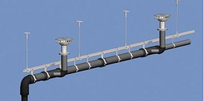 虹吸式屋面雨水排水系統(tǒng)一般包括雨水斗、連接管、懸吊管、立管、排出管、配套管件和固定件等。在虹吸式屋面雨水排水系統(tǒng)中,雨水斗的設(shè)計十分關(guān)鍵。比較優(yōu)質(zhì)的雨水斗能夠廣泛適用不同的屋頂,也就是說只需要將雨水斗與相應的配件組合在一起就能在混凝土、金屬或者木質(zhì)屋面上使用。虹吸式屋面雨水排水系統(tǒng)在施工的時候一定要注意避免空氣進入雨水斗,否則會降低系統(tǒng)排水效率。